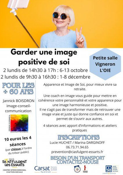 Des séances de coaching pour retrouver confiance en soi, affirmation et apaisement face à son image. Ces séances permettront aux seniors de s'ouvrir aux autres avec confiance grâce à des enseignements et des ateliers pratiques sur 4 séances :